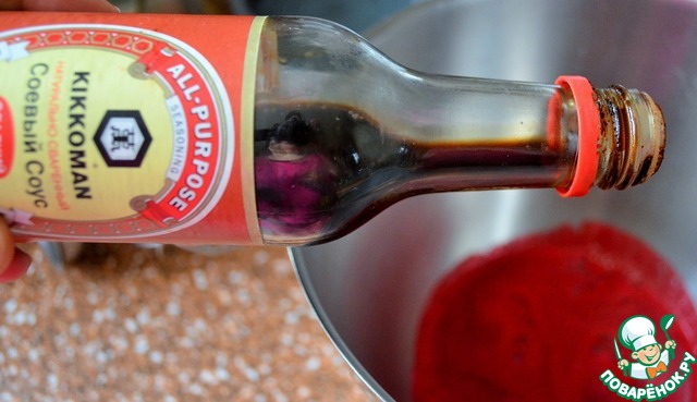 В сок влить соевый соус.