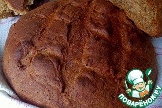 Нагреть духовку. Расстоявшуюся заготовку смазать сливками и отпекать при 180 градусах 35 минут, до "сухой лучинки". Вес готового хлеба 670 г..
