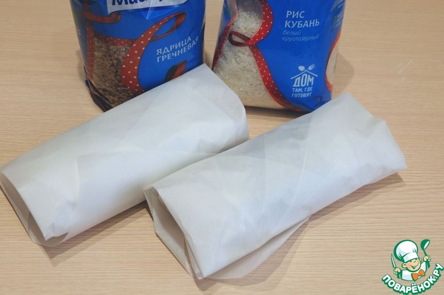 Рулеты смазать тонким слоем растительного масла, обернуть пергаментом.