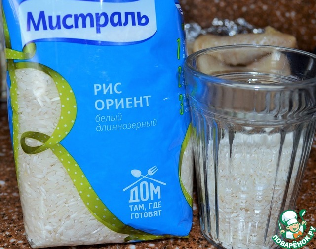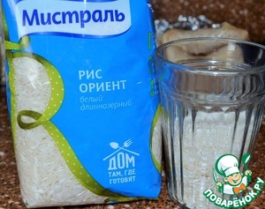 Рис залить водой. Качество продукции от ТМ Мистраль на высоте, поэтому перебирать и промывать рис не требуется.