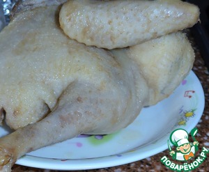 Курицу вымыть, залить холодной водой (2,5 л) и вскипятить.