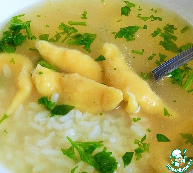 В это время накатать мелких галушек. Добавить их в суп, варить 5 - 7 минут. Посолить.