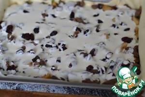 Слоеное тесто выкладываем в подготовленную форму 24х20, формируя края.