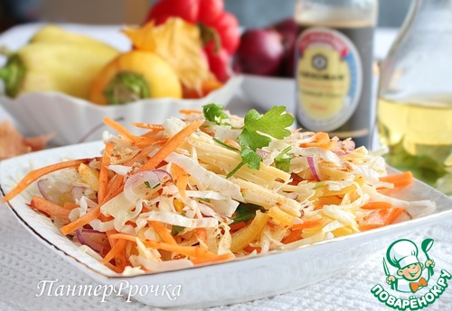 Вкусный, свежий, легкий салат! А еще он такой яркий, красочный, что безусловно поднимет настроение в серый осенний день. Готовится просто и быстро, а вкус отличный!