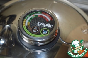 Лук нарезать, лисички обсушить. Сотейник Zepter накрыть крышкой, поставить на средний огонь. Когда стрелка термоконтроллера дойдет до середины зеленого поля по шкале Dry-можно начинать готовить. В сотейник выложить лук с лисичками и готовить с открытой крышкой пару минут. Я сделала это для того, чтоб выпарилась часть влаги из грибов.