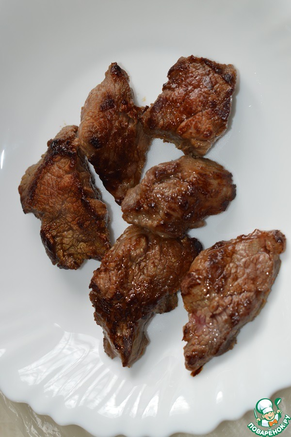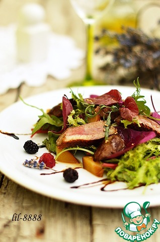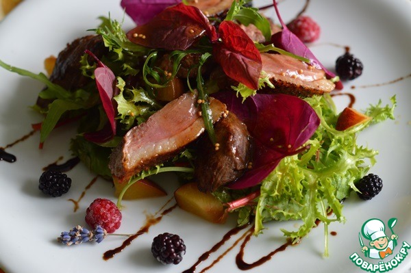 Рецепт «Теплый салат с мясом и персиком»: