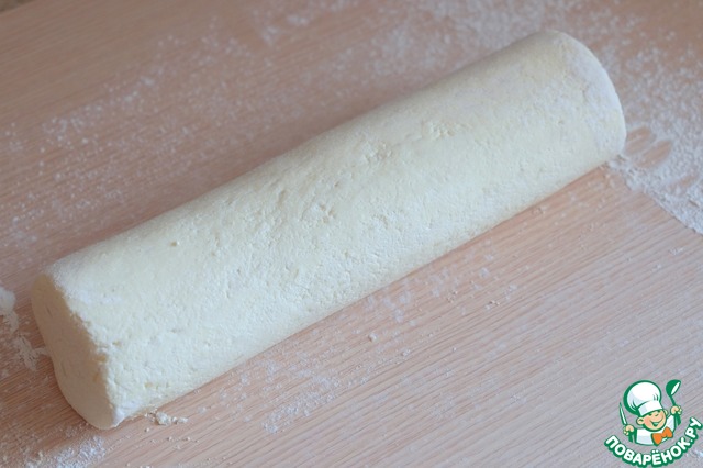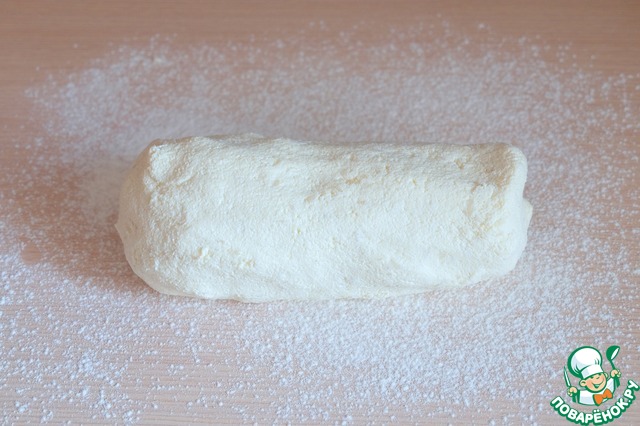 Поверхность стола подпылить мукой, выложить творожное тесто.