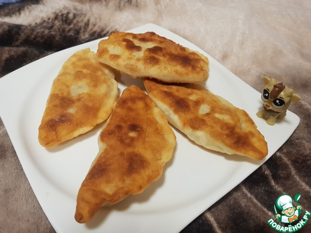 Тесто скатать "колбаской" и нарезать кусочками. Берем такой кусочек, раскатываем скалкой, кладем начинку, формируем пирожок и прокатываем его снова скалкой. Жарим пирожки в подсолнечном масле. Подавать со сметанкой.