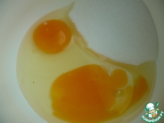 Яйца взбить с сахаром, ванильным сахаром, солью.