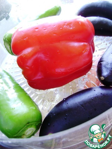 • Выложить на решетку пароварки перцы, помидоры и баклажан. Варить 20 минут.