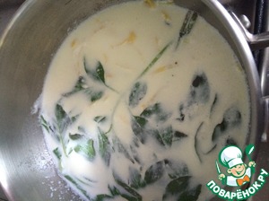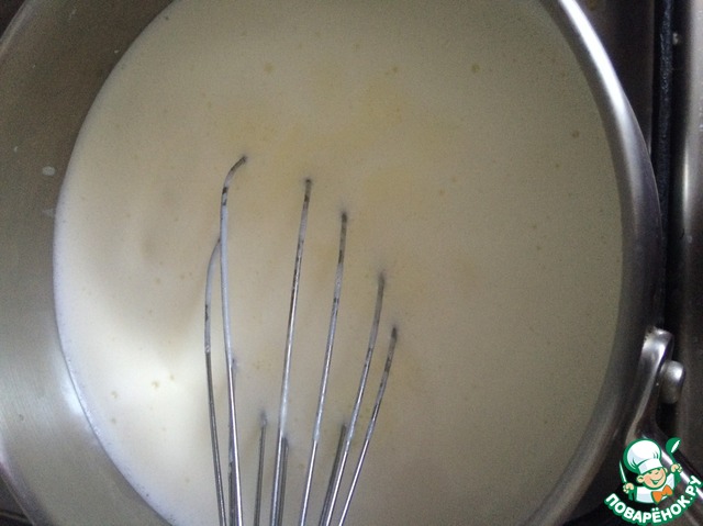 Желтки добавить в базиликовое молоко, перемешать венчиком и поставить на огонь. Непрерывно помешивая на небольшом огне прогреваем массу, пока она не начнет густеть. Снимаем с огня и еще немного перемешиваем. Если вы вдруг заметите, что масса начинает расслаиваться и появляются мелкие крупинки - не пугайтесь, все можно поправить. Для этого нужно очень быстро перелить смесь в холодную посуду, поставить на "ледяную баню" и интенсивно мешать. Смесь приобретет правильную консистенцию.