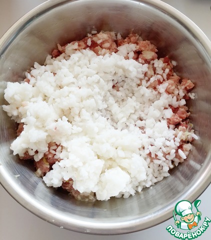 Мясо пропустите через мясорубку с самой крупной решеткой вместе с луком и чесноком. Добавьте к фаршу отварной рис, соль и перец
