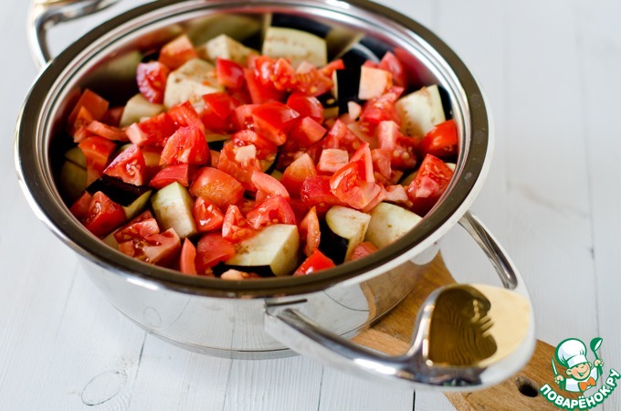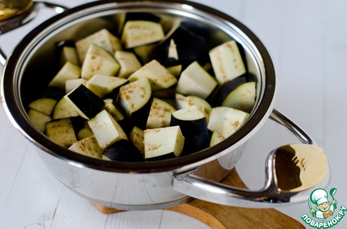 Баклажаны вымыть и нарезать толстыми ломтиками. Положить их в холодный сотейник Zepter.