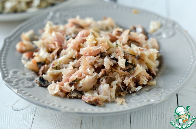 Снять с готовой рыбы филе, разбирая ее на волокна.