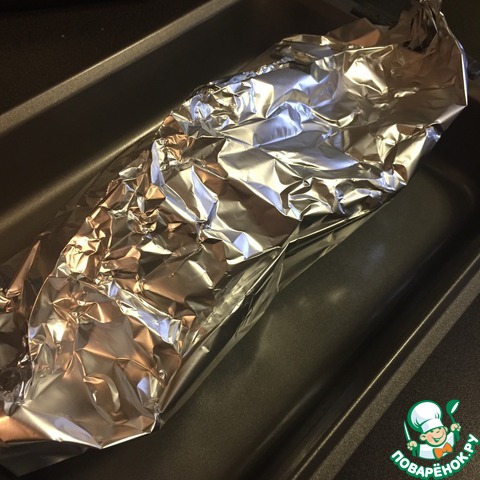 Фольгу сверху закрываем и ставим в предварительно нагретую до 200 С ( 400F ) духовку на 60 минут.