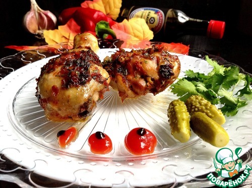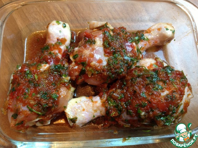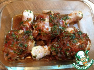 В посуду для запекания выкладываем голени вместе с маринадом и отправляем в духовку на 40 мин. при 180 град.