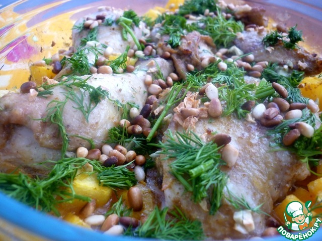 Рецепт «Куриные ножки с тыквой и кедровыми орешками»: