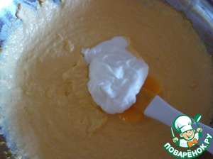 Белки взбить до пиков и аккуратно ввести в тыквенную начинку.