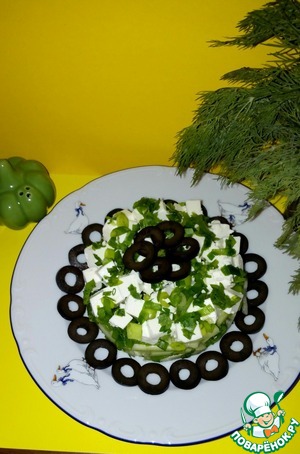 Простой и вкусный салатик на каждый день. Сочетание белого, зелёного и чёрного порадует глаз, а вкус доставит удовольствие.