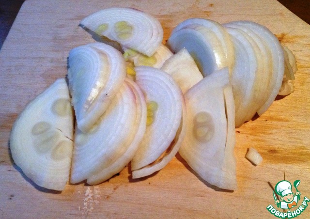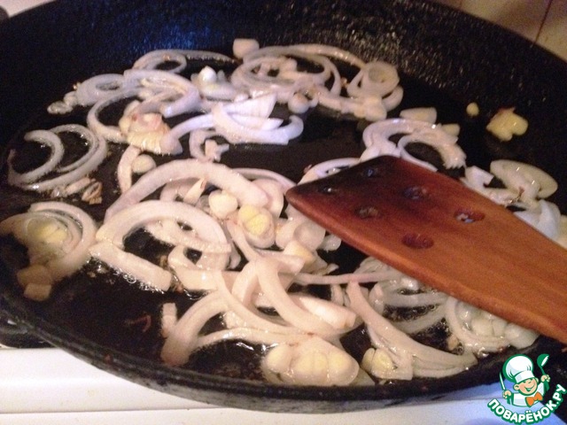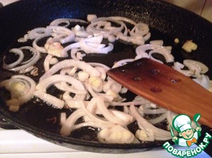 В сковороде разогреть растительное масло и обжарить лук до золотистого цвета.
