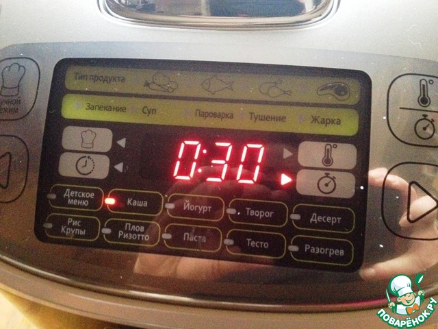 Вот как это выглядит. Закрыть крышку и готовить до окончания программы.