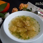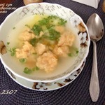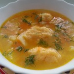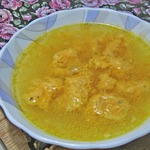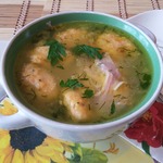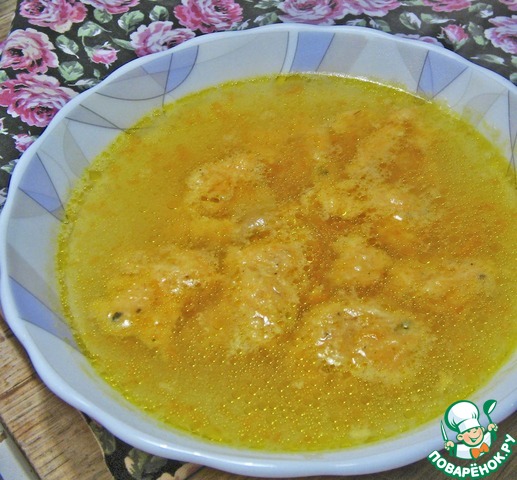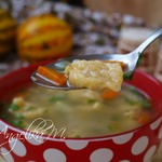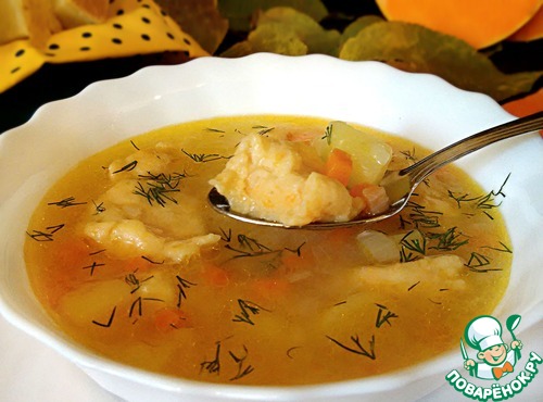 В кипящий бульон опускаем по половине чайной ложки тыквенного теста. Чтоб тесто не прилипало к ложке, нужно опускать ее каждый раз в холодную воду. Когда тесто закончится, хорошо перемешайте суп и варите до готовности (примерно 7-10 минут).