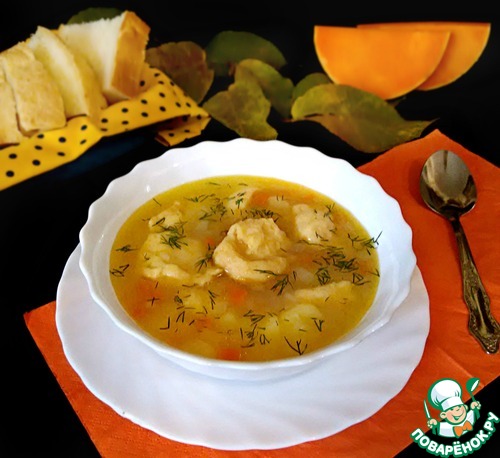 Предлагаю Вам простой овощной суп с тыквенными клецками. Варится быстро и из доступных продуктов.