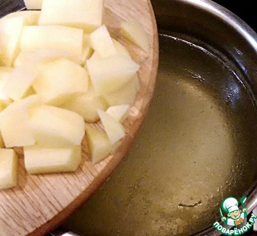 Картофель очистить, порезать небольшими кубиками и варить до готовности. -