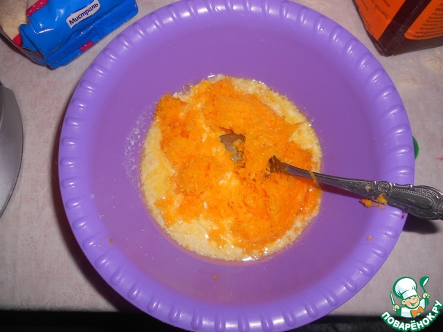 Соединить сыпучую массу с яичной, добавить натертую тыкву. -