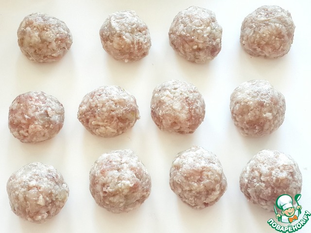 - Мука пшеничная / Мука (2 ч.л. в соус, остальное для обваливания тефтелей) — 100 г