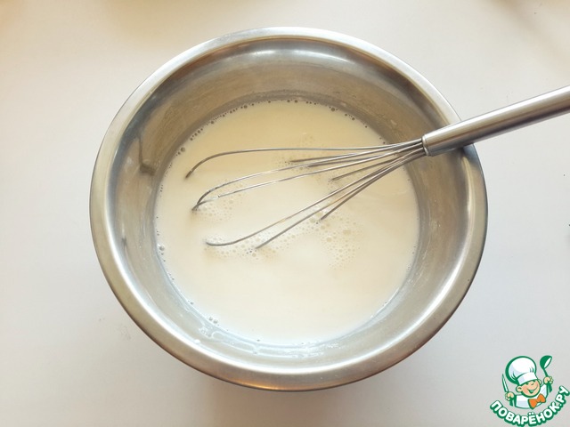 В молоке венчиком разболтайте муку (примерно 2 ч. л.), чтобы не было комков.