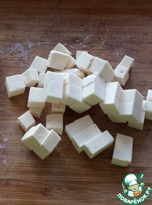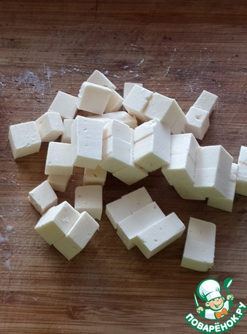 Сыр фета нарежьте кубиками и добавьте к тефтелям.
