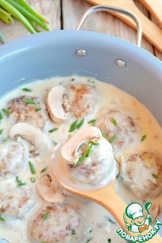 Тефтели в сливочном соусе любят многие. В этом рецепте соус дополнен грибами и сыром фета - получается очень насыщенный вкус!