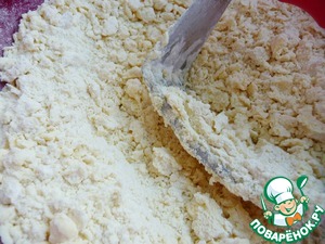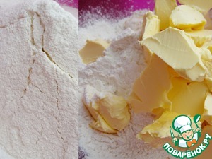 В миску просеять муку, накрошить холодный маргарин (у меня Rама).