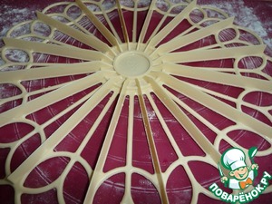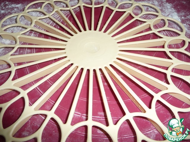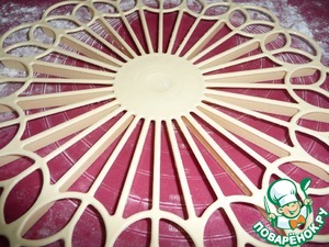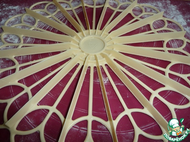 Сигменты нарезала формой для нарезки тортов, центр дорезала шпателем, прыпыляя его мукой. -