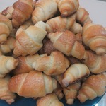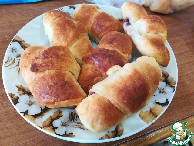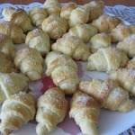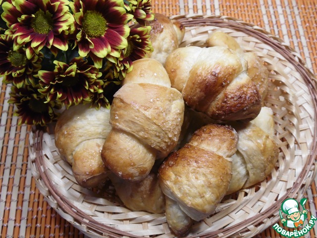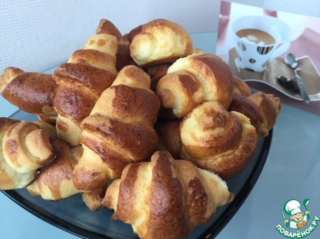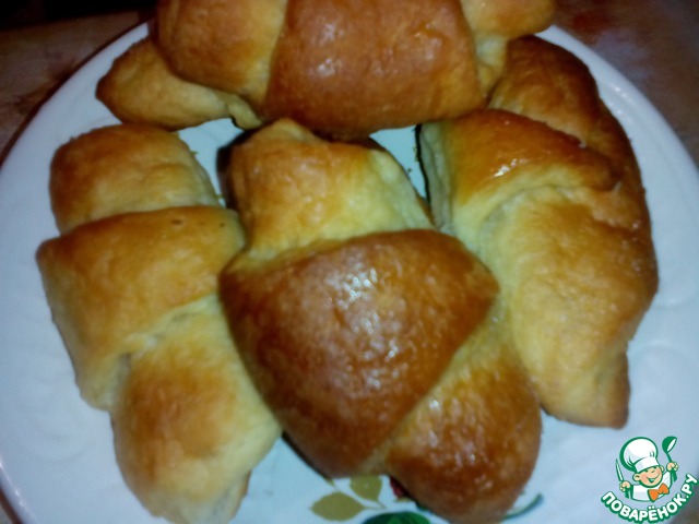 Нежнейшие, пуховые рогалики из дрожжевого теста. Автору рецепта Маргарите "Маргарита B" огромнейшая благодарность. Рогалики можно делать с начинкой (любое густое повидло, ореховая начинка, вяленые фрукты или сухофрукты, творог и т. д.). Рогалики в меру сладкие, для любителей сладкого, можно сахар увеличить.