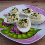 Нафаршировать яйца, украсить зеленью. ПРИЯТНОГО АППЕТИТА,