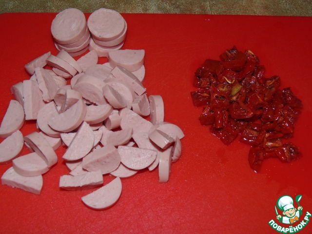 Рецепт «Манник с сосисками и вялеными томатами»: