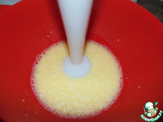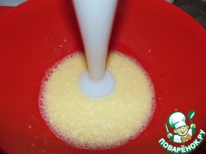 Яйца взбить с солью и сахаром.