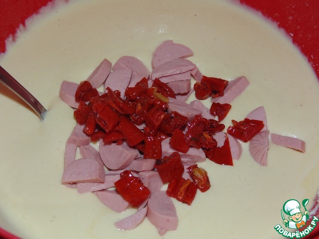 Манник с сосисками и вялеными томатами