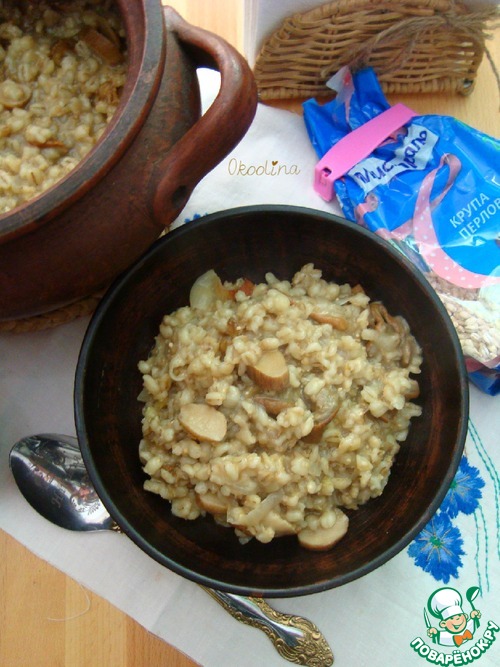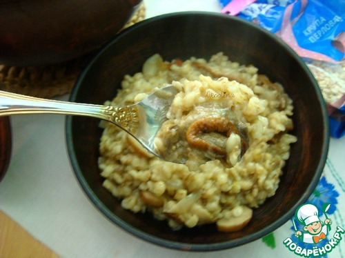 Перловая каша с белыми грибами и луком, томленная в духовке 2 часа со сливочным маслом. Каша "Вкуснотеево"!