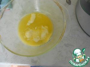 К маслу добваить простоквашу, яйцо, аккуратно перемешать.