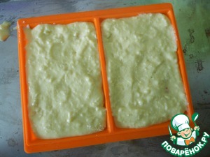 Т. к. у меня нет вафельницы, я использовала силиконовую форму для выпечки. Тесто вылить в формочки.