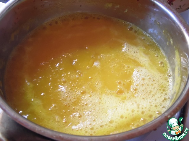 Тыквенно-апельсиновую массу взбить блендером, добавить в нее мед, варить до загустения 10-15 минут.
