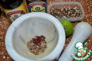 - Специи ( перец душистый, лист лавровый, смесь 5 перцев, перец острый ) — 1 ч. л.