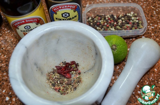 - Соевый соус (натурально сваренный от ТМ Киккоман) — 2 ст. л.