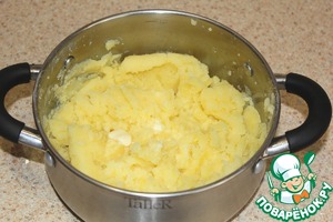 Молоко вскипятить, добавить кусок сливочного масла. Кипяченое молоко вместе со сливочным маслом добавить в картофельное пюре.