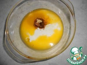 В миске смешать теплое молоко с растопленным сливочным маслом, добавить специи с, соль и сахар.