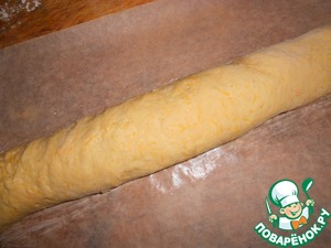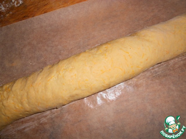 Свернуть тесто в плотный рулет, выложить на бумагу для выпекания, положить в морозильник на 30 мин.