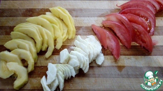 - Помидор (средний, у меня половинка крупного) — 1 шт